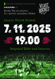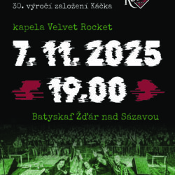 Zveme vás na pořádný mejdan do klubu Batyskaf ve Žďáře nad Sázavou, kde to v pátek 7. listopadu od 19:00 rozjede kapela Velvet Rocket 🚀