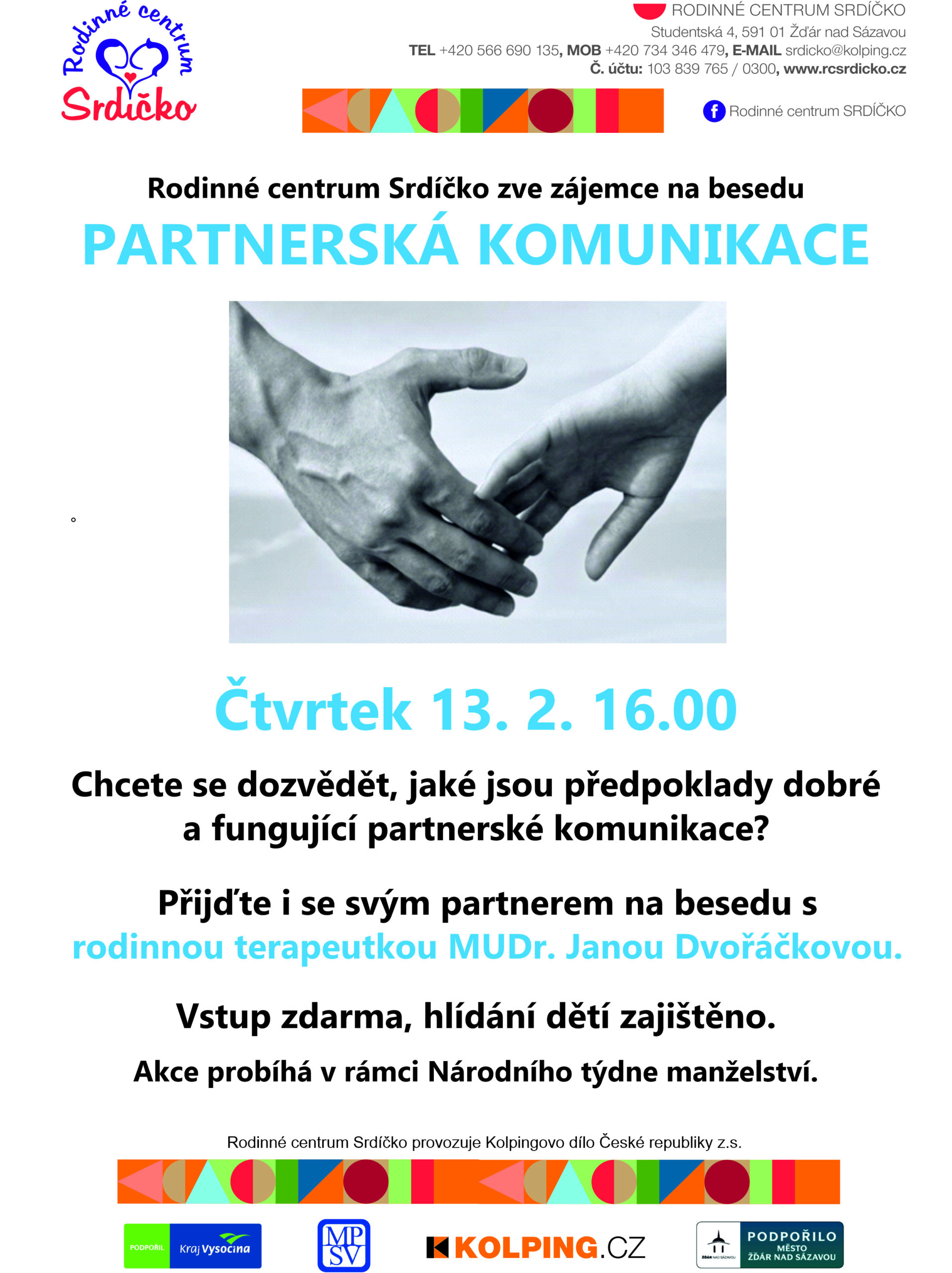 Ve čtvrtek 13. 2. 16.00 v Rodinném centru Srdíčko ve Žďáře nad Sázavou.