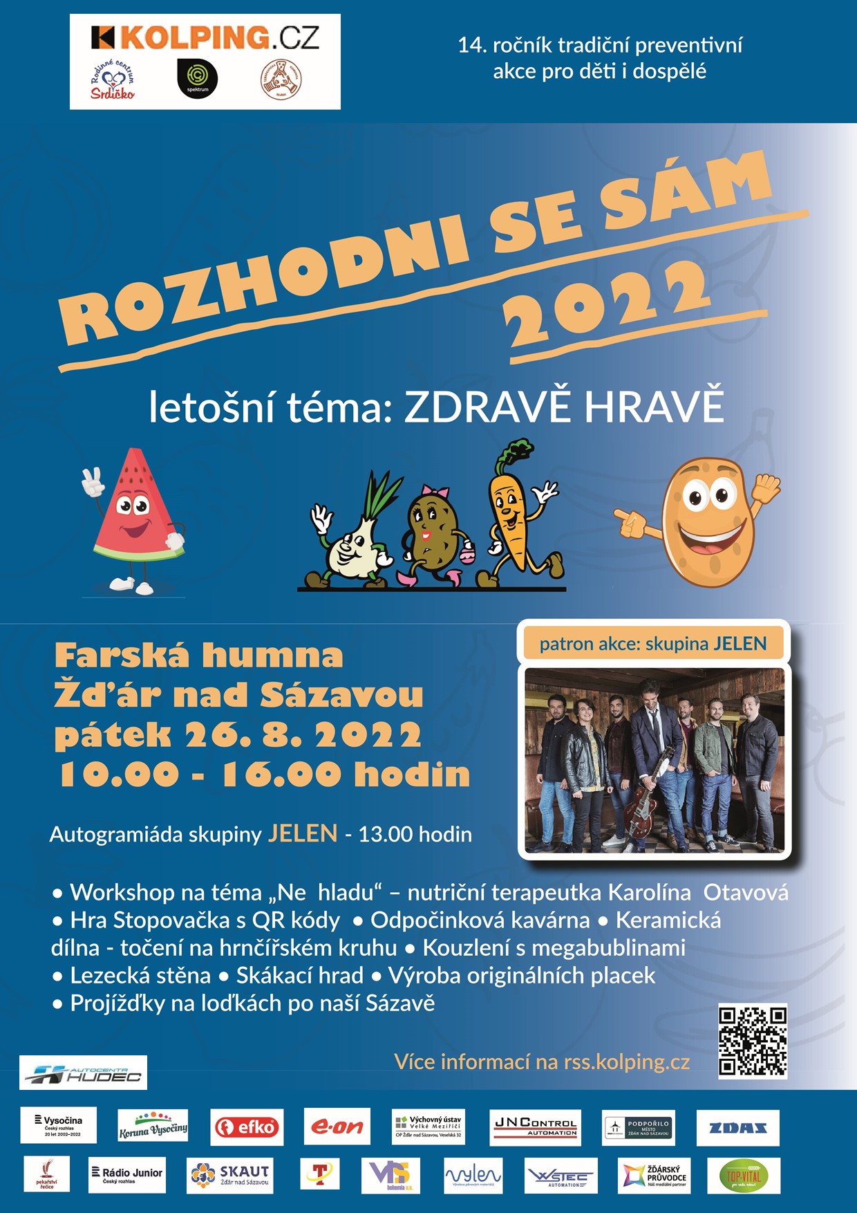 V pátek 26. srpna proběhne od 10 do 16 hodin na Farských humnech ve Žďáru nad Sázavou již čtrnáctý ročník preventivní akce pro děti, mládež i celé rodiny Rozhodni se sám. Téma letošního ročníku Zdravě hravě představí prostřednictvím různých aktivit a workshopů problematiku stravování a zdravého životního stylu. Patronem akce bude hudební skupina Jelen, s jejímiž členy se mohou zájemci setkat při autogramiádě nebo na večerním koncertu.