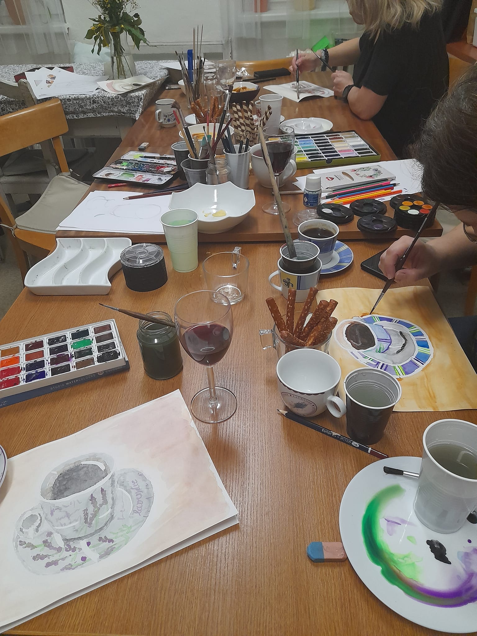 „Letos jsme se vrátili k akvarelu. Velice oblíbené technice, kdy se učíme různě barvy míchat, promývat a vzájemně prolínat. Scházíme se nepravidelně, snažíme se termíny přizpůsobit všem účastnicím. K tvorbě si vytvoříme útulné prostředí, připravíme si občerstvení a pak se na několik hodin ponoříme do své tvorby,“ říká sekretář Kolpingovy rodiny Moravský Krumlov Drahomíra Nečasová.